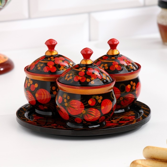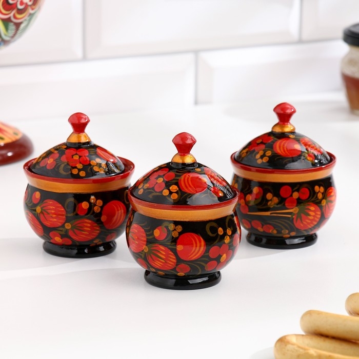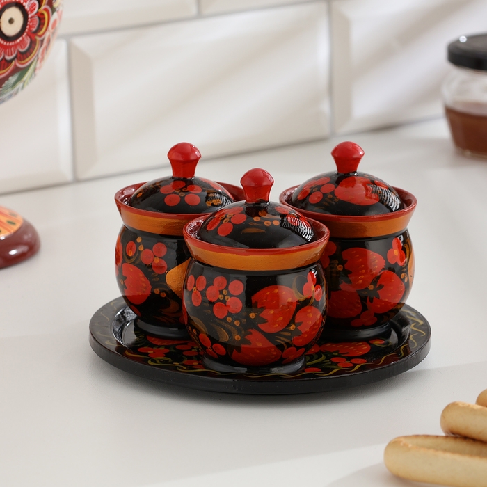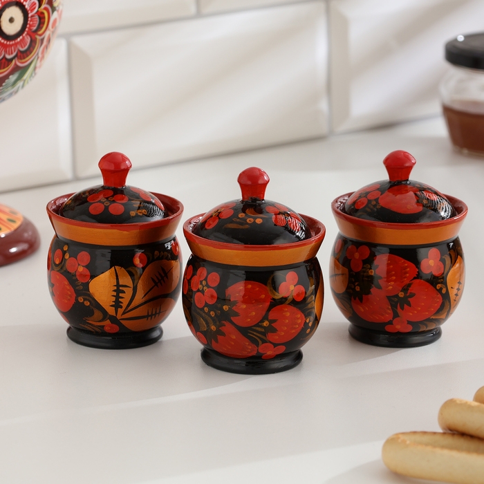 Набор специй «Земляничка», средний, 15×15×6 см, хохлома