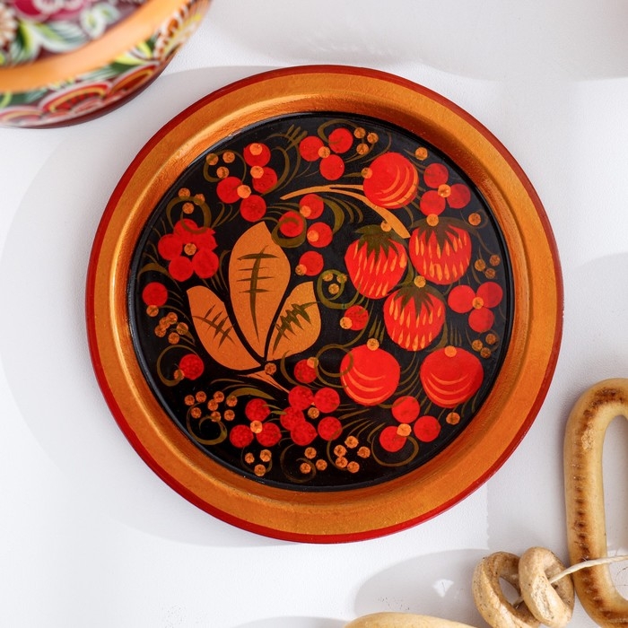 Традиционные элементы Хохломы — ягоды рябины и земляники, цветы и листья, птицы, рыбы и звери.