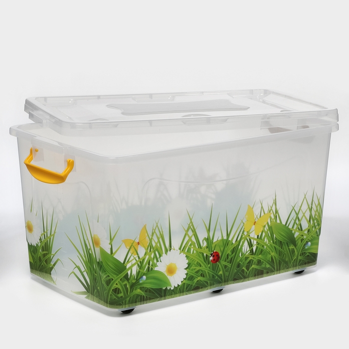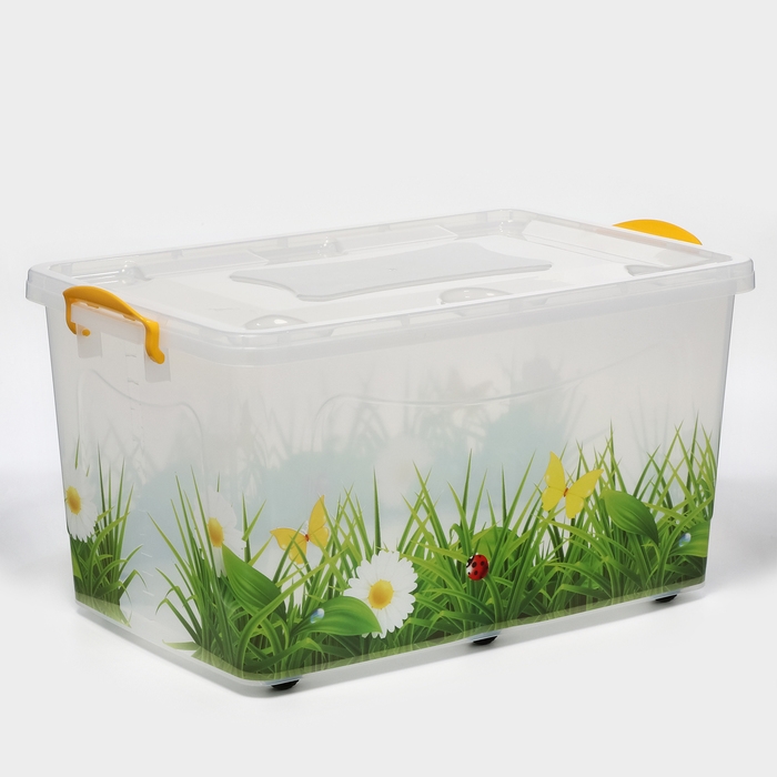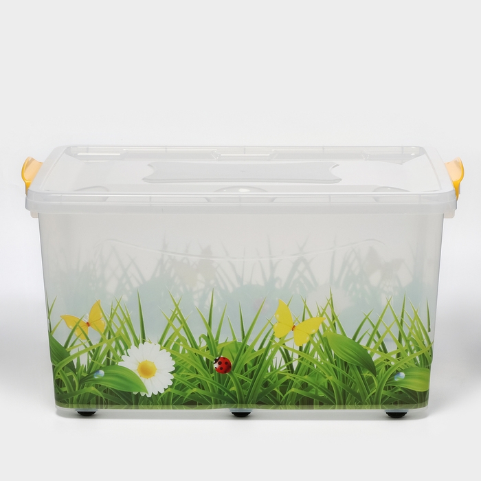 Контейнер для хранения с крышкой «Hide box. Трава», 50 л, 60×38×31 см, на колёсиках, МИКС