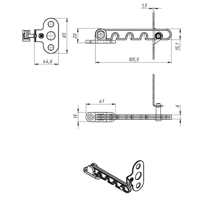 Ограничитель открывания окна пластиковый, L=105, белый 50 шт