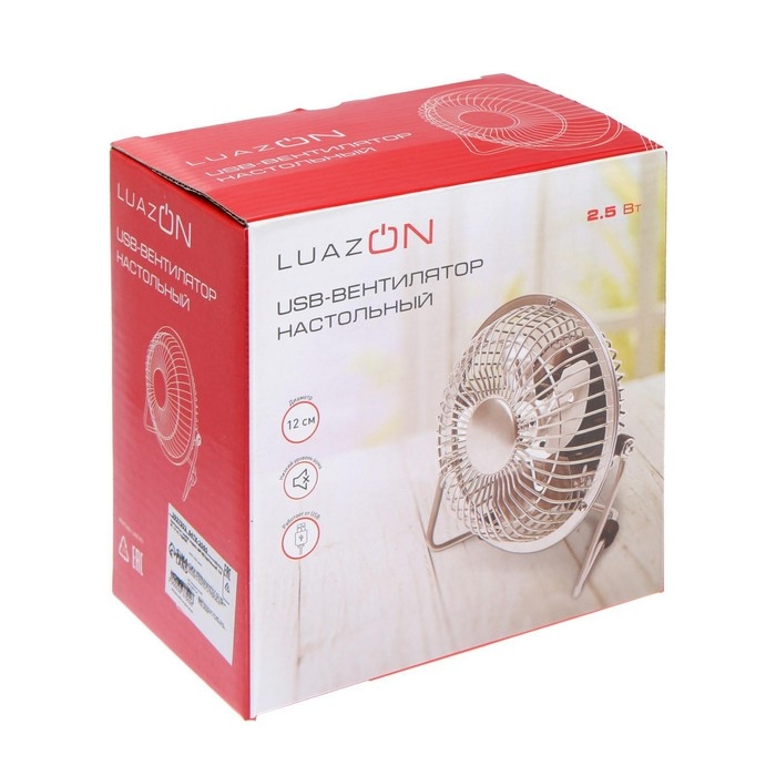 Вентилятор Luazon LOF-05, настольный, 2.5 Вт, 12 см, металл, белый