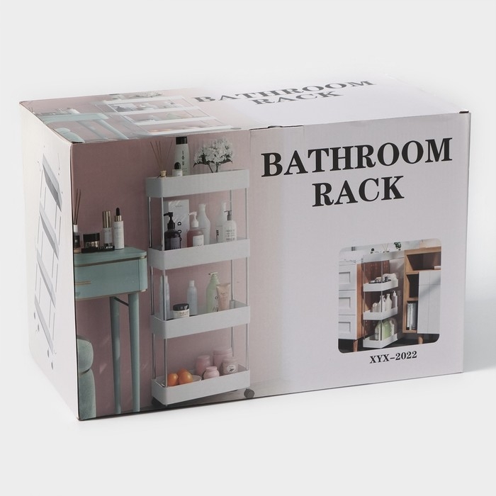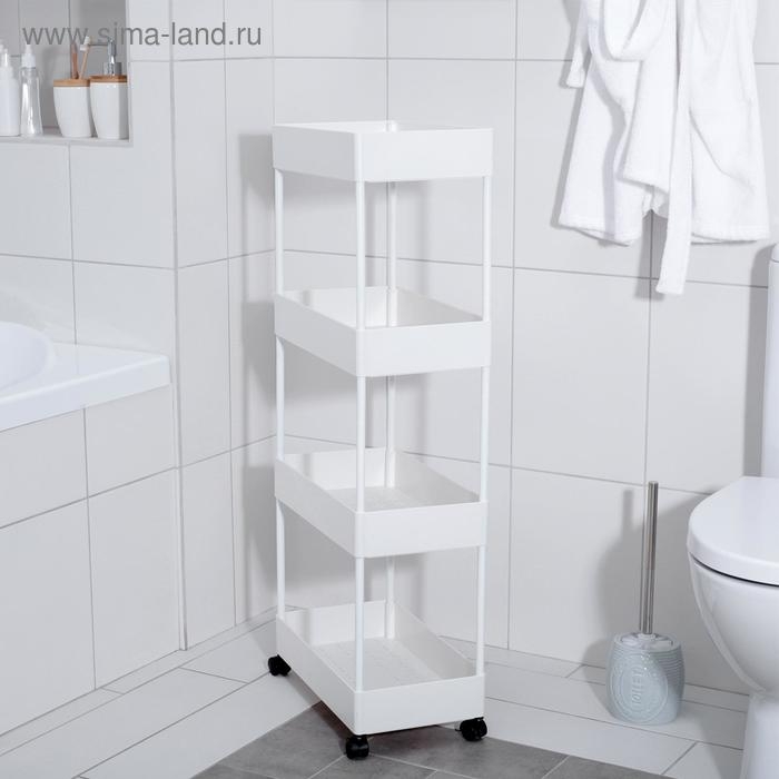 Этажерка напольная, 4-х секционная, на колёсиках, 40×21,7×90 см, цвет белый