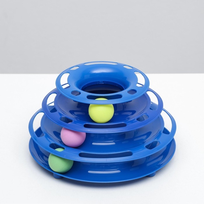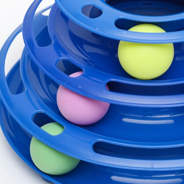 Игровой комплекс "Пирамида" для кошек с 3 шариками,15 x 24 x 13,2 см, синий
