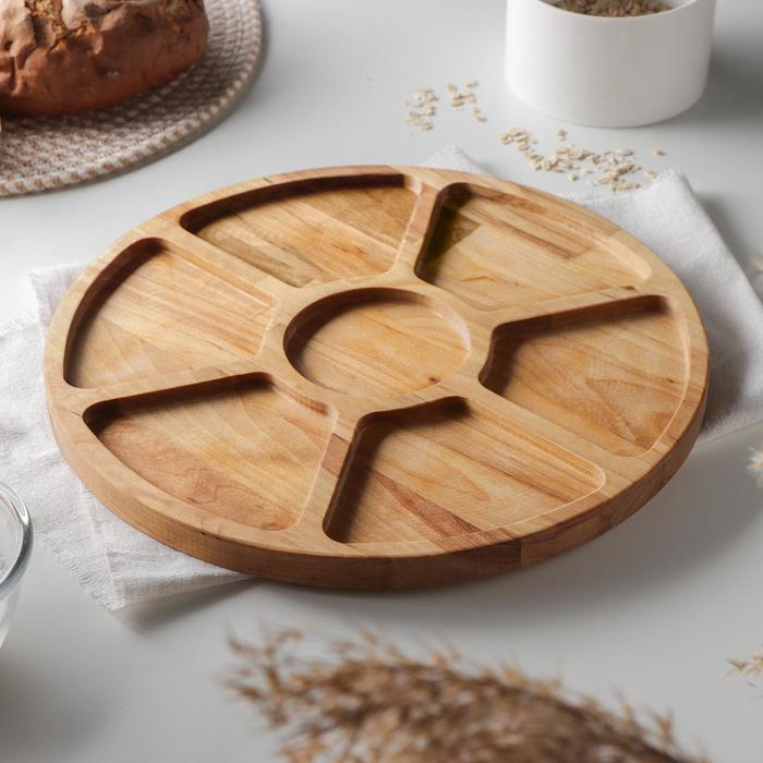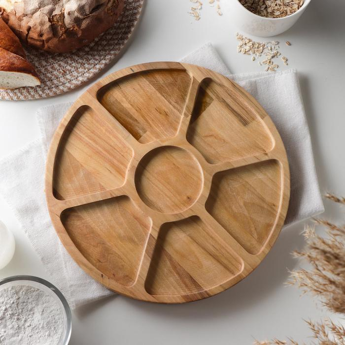 Менажница круглая Доляна, d=32 см, 7 секций, берёза
