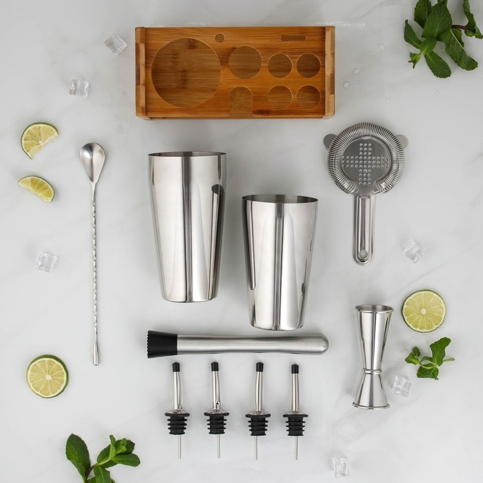 - Стильный дизайн: Серебристый цвет и современная форма инструментов станут украшением любого бара.