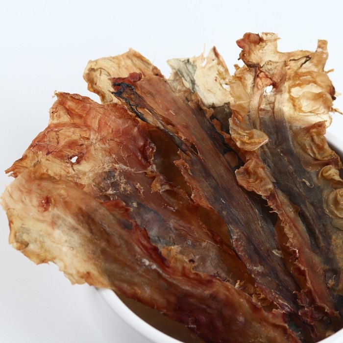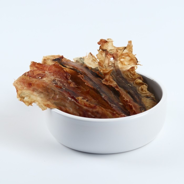 Наш снек из пузыря трески легко жуется длительное время, обеспечивая не только удовольствие, но и полезную нагрузку на зубы и челюсти вашего питомца. Атлантическая треска - это источник аминокислот, жирных кислот и белка. Витамины А и D поддерживают здоровье кожи и шерсти вашего питомца, а также обеспечивают правильное развитие костей. Продукт не содержит соли, ГМО, красителей и консервантов.