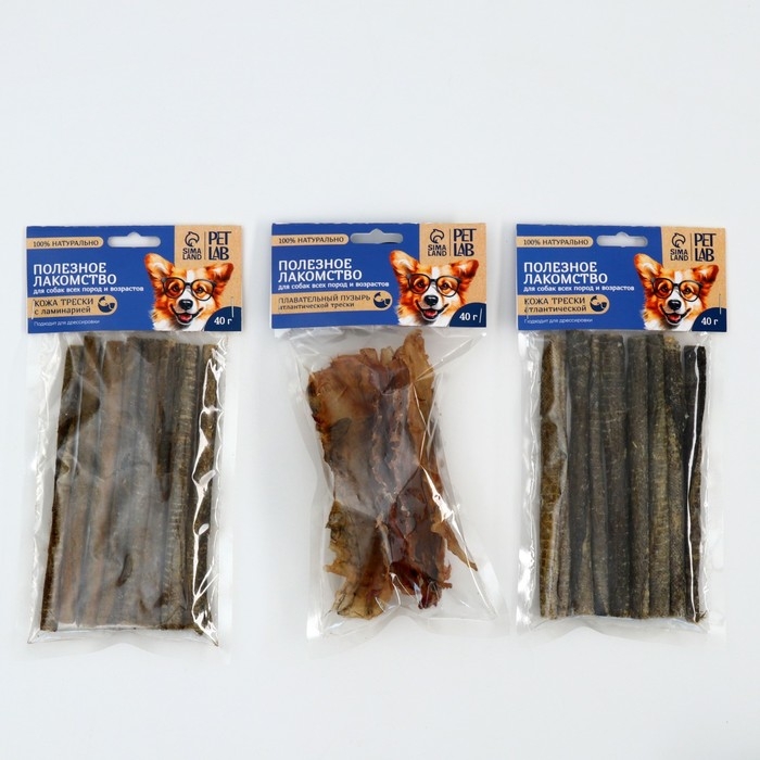 Лакомство для собак натуральное PetLab: Плавательный пузырь атлантической трески, 40 г.