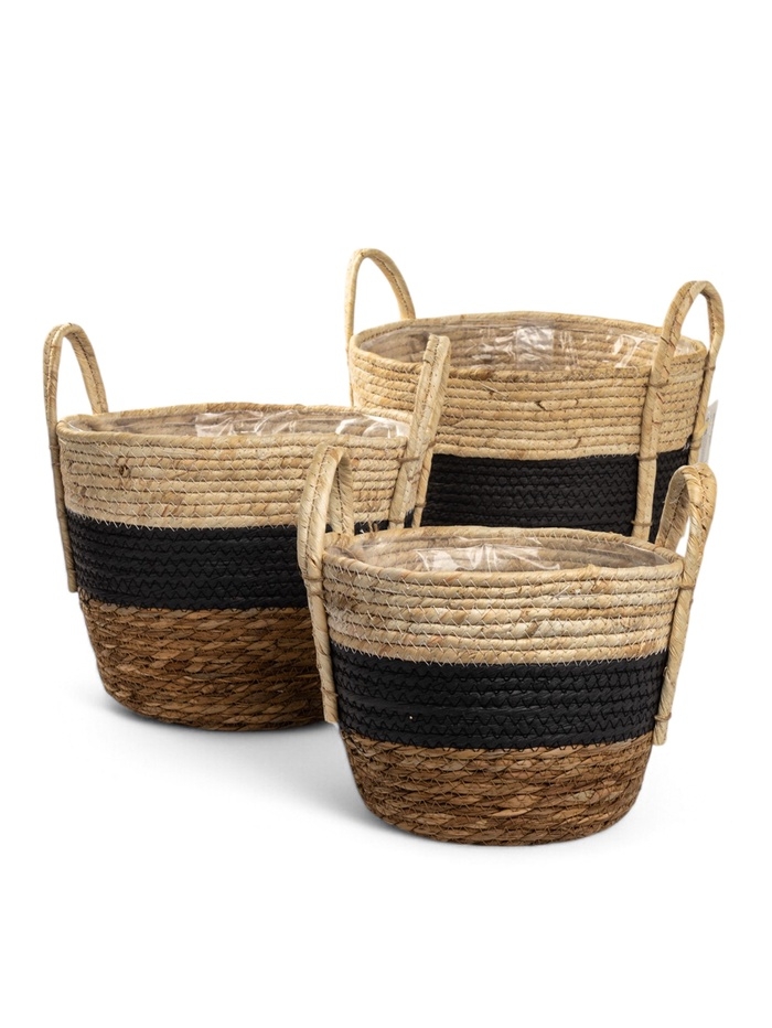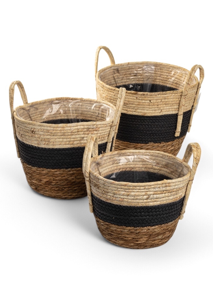 Набор кашпо "Инга" синяя полоса, 20,5х25/25,5х28/27х33см