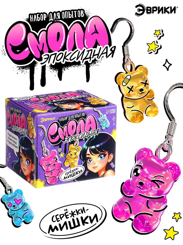 ЭВРИКИ Набор для опытов "Эпоксидная смола", сережки-мишки
