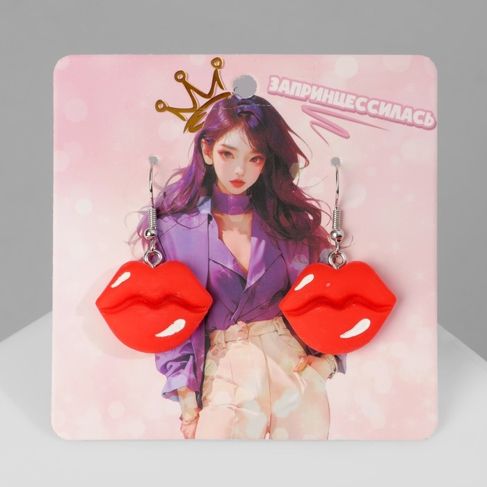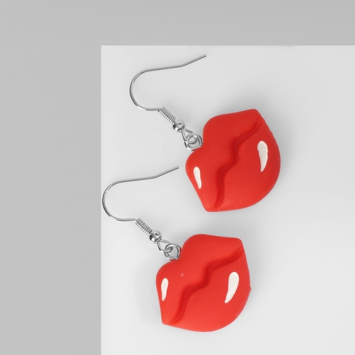 Серьги ассорти «Радость» губы, цвет красно-белый в серебре