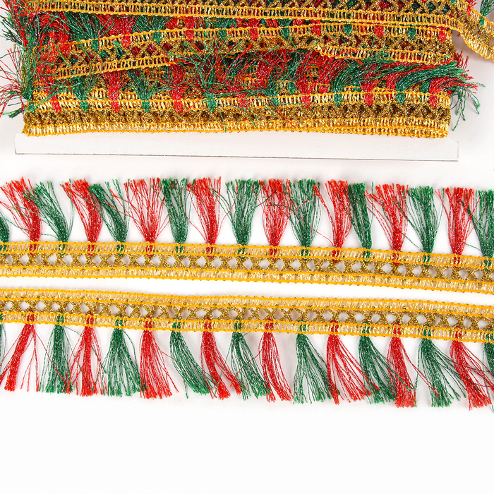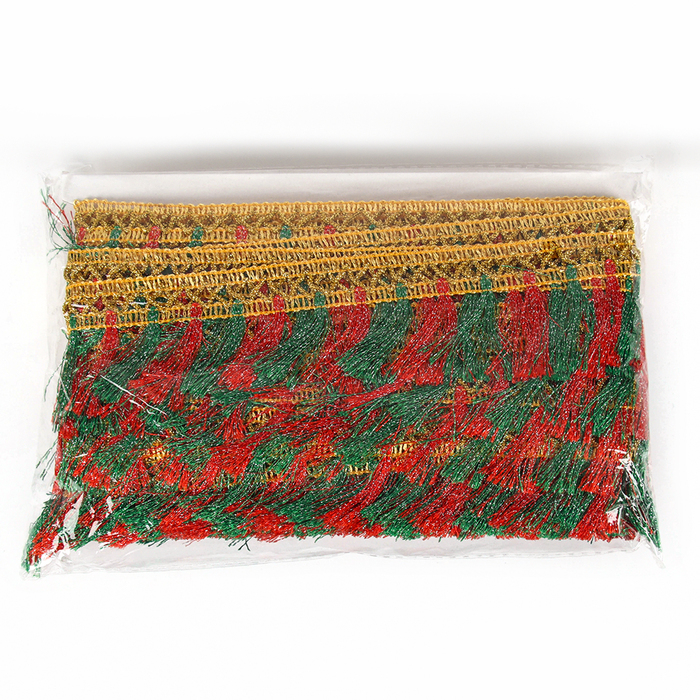 Тесьма красно-зелёная «Кисточки», ширина 4 см, в упаковке 25 м