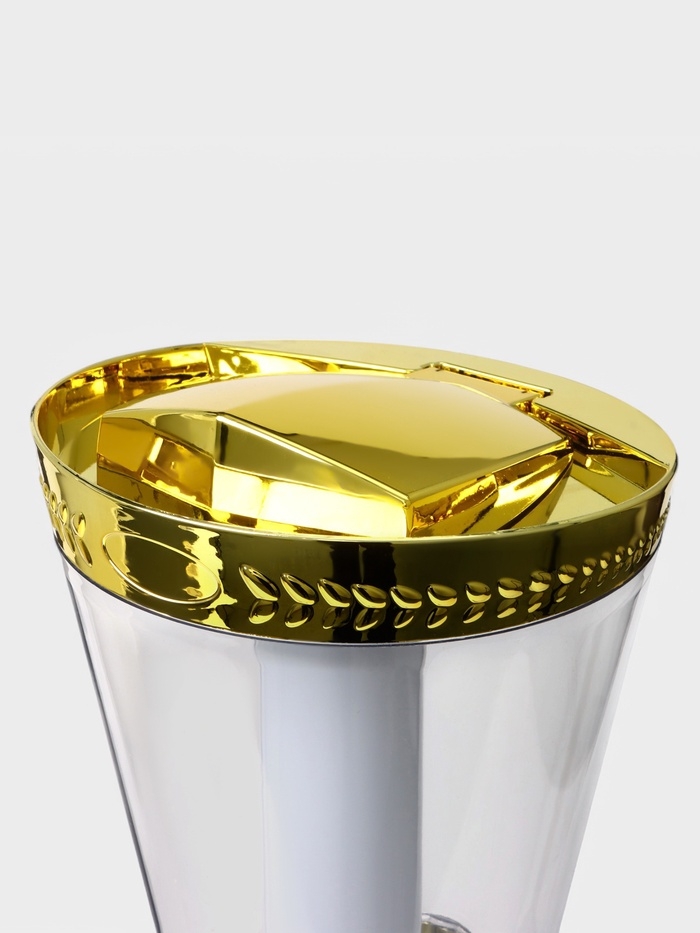 Золотистый цвет и современный дизайн делают пивную башню центром внимания на любом мероприятии. Подсветка добавляет элемент уюта и праздника, создавая особую атмосферу.