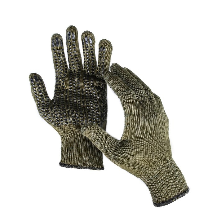 Перчатки садовые, хб, вязка 10 класс, 5 нитей, 3-слойные, размер 10, с ПВХ точками, зелёные, «Олива»