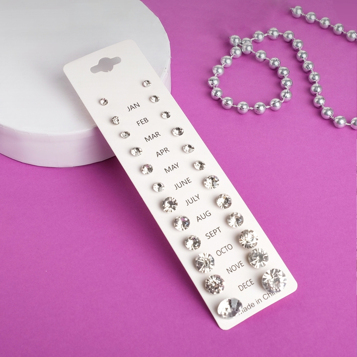 Пусеты 12 пар One year, классика, цвет белый в серебре