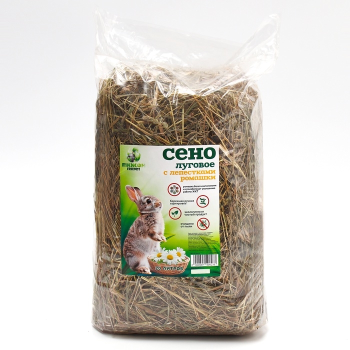 Сено луговое «Пижон» лепестки ромашки, для грызунов, 20 л, 500 г