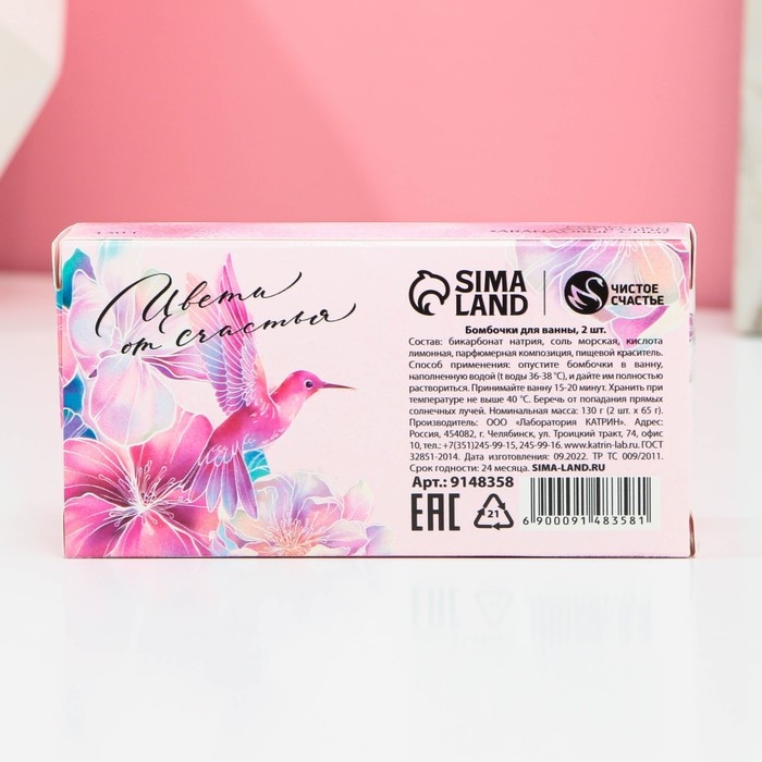 Набор бомбочки для ванны ЧИСТОЕ СЧАСТЬЕ «С 8 Марта!», 2х65 г