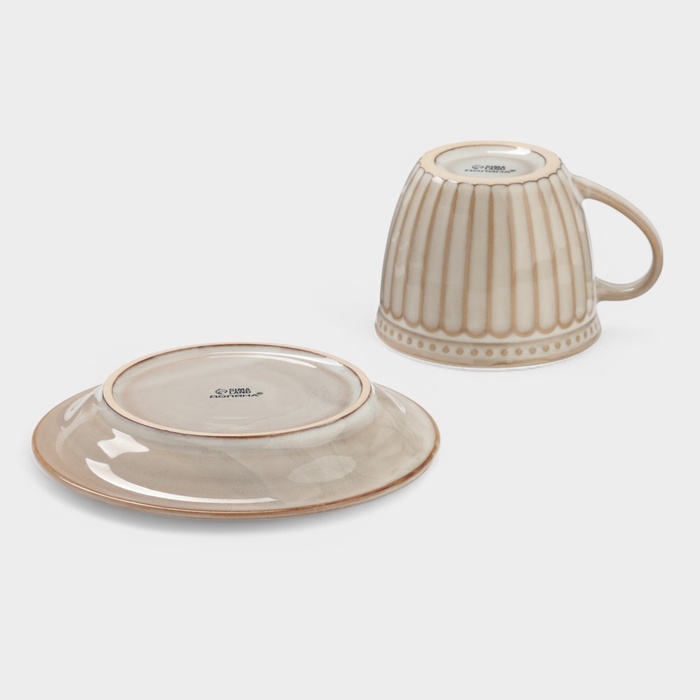 Чайная пара Доляна "Винтаж" 250 мл блюдце 15х2 см, кружка 11,5х9х7 см, цвет бежевый