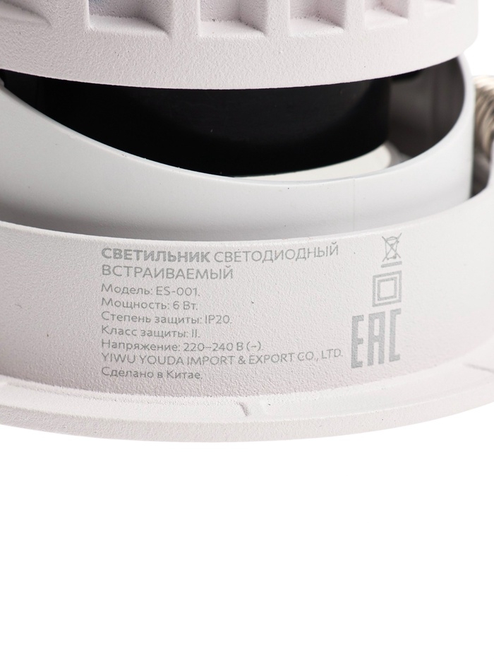 Светильник светодиодный встраиваемый, поворотный, 6Вт, 4000К, с драйвером, D75, белый