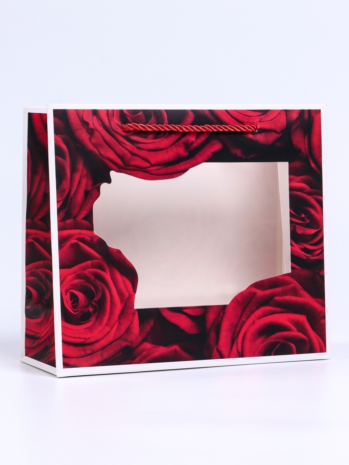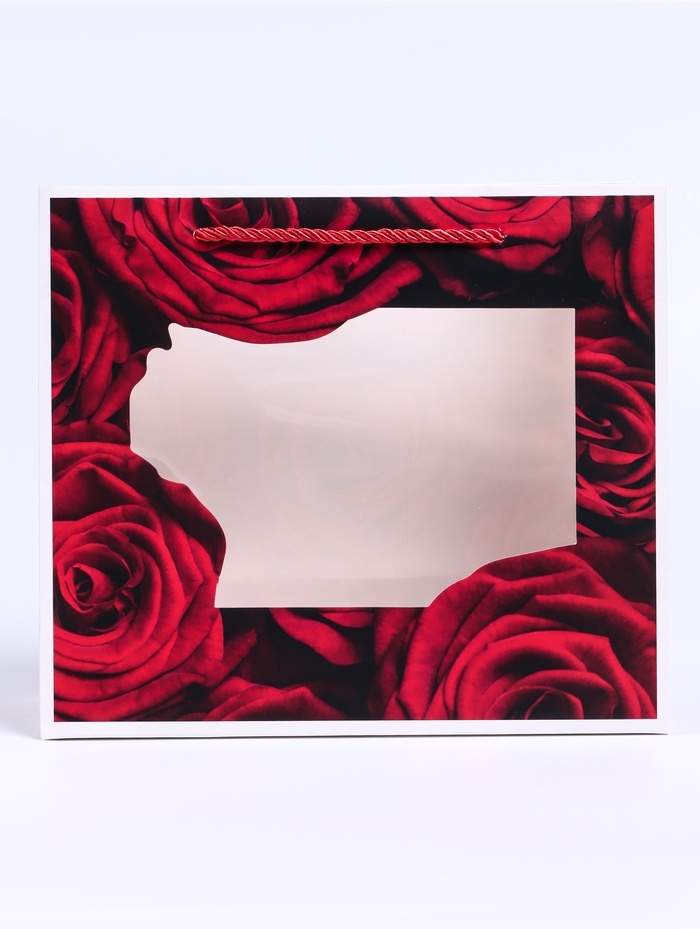 Пакет подарочный с окном "Розы", 25 х 10 х 22 см
