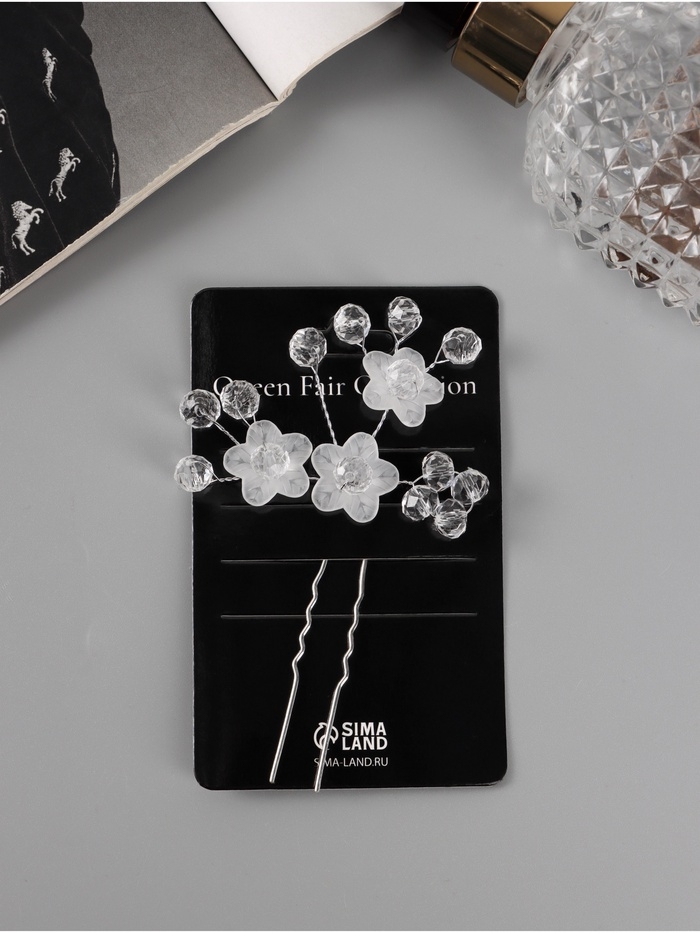 Шпилька для волос "Эмилия" цветник мини шарики, 8х7 см, прозрачный