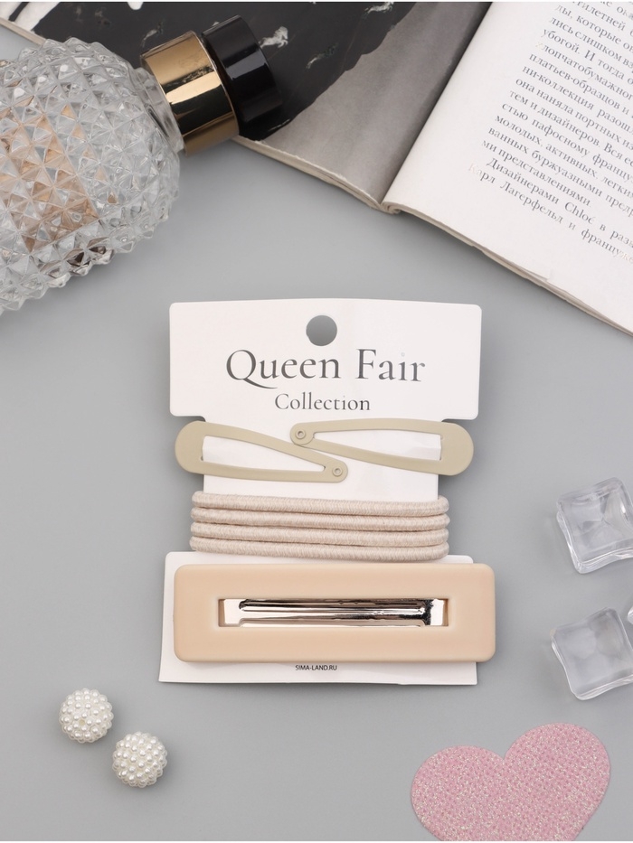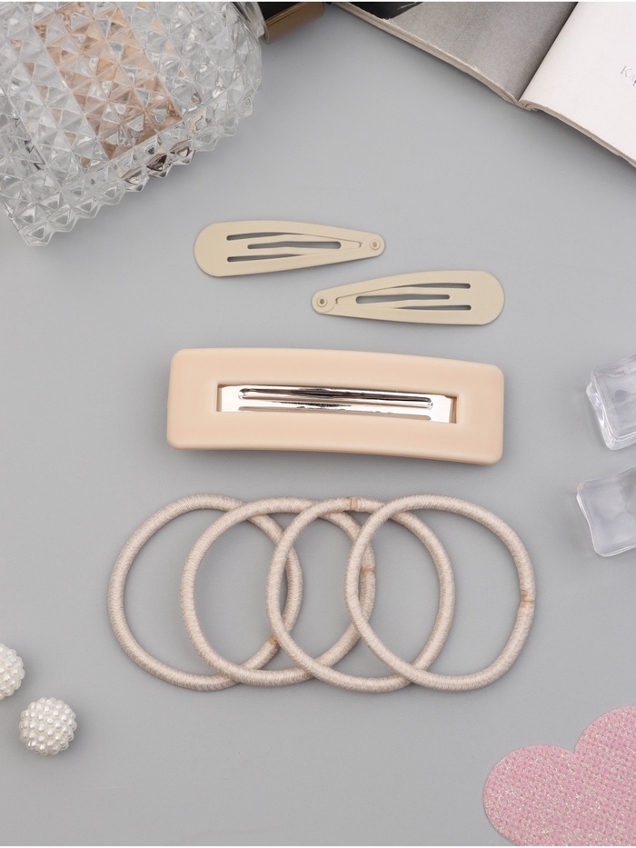 Набор для волос "Элери" (4 резинки 6,5см, автомат 8см, 2 невидимки 4,5см) бежевый