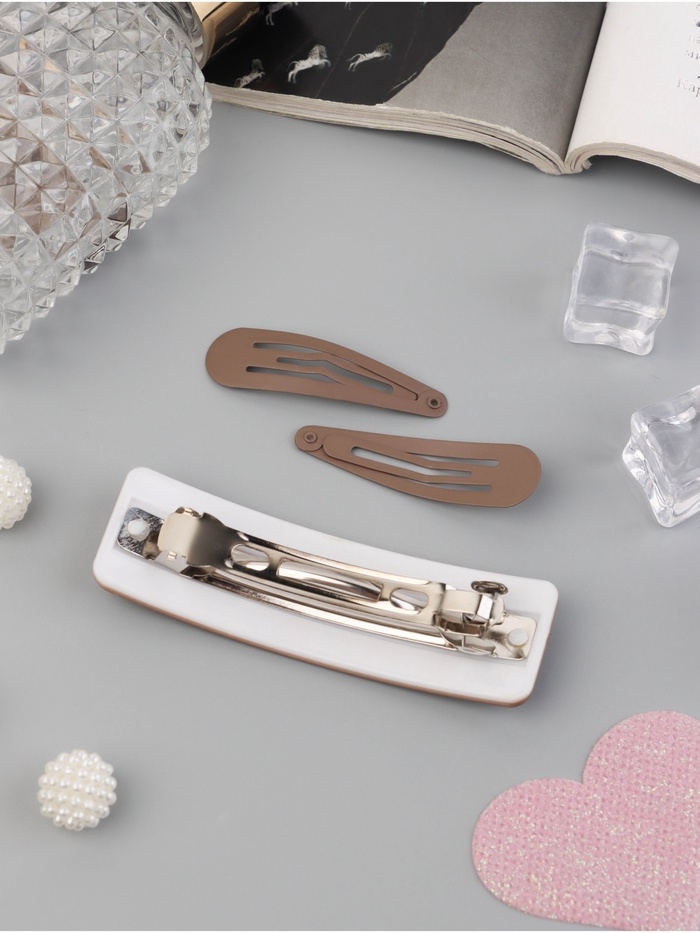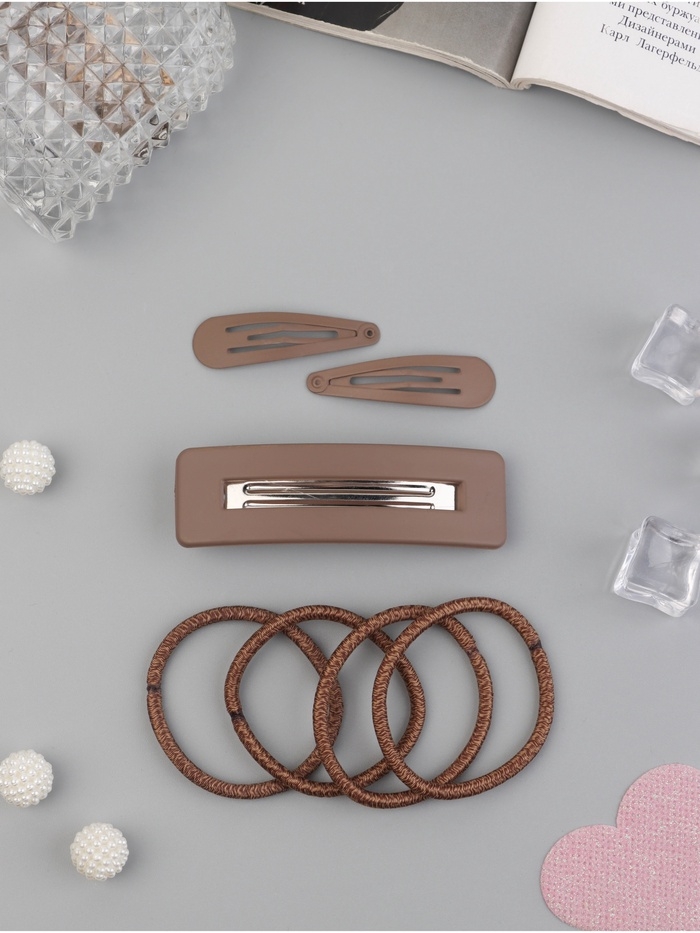 Набор для волос "Элери" (4 резинки 6,5см, автомат 8см, 2 невидимки 4,5см) коричневый