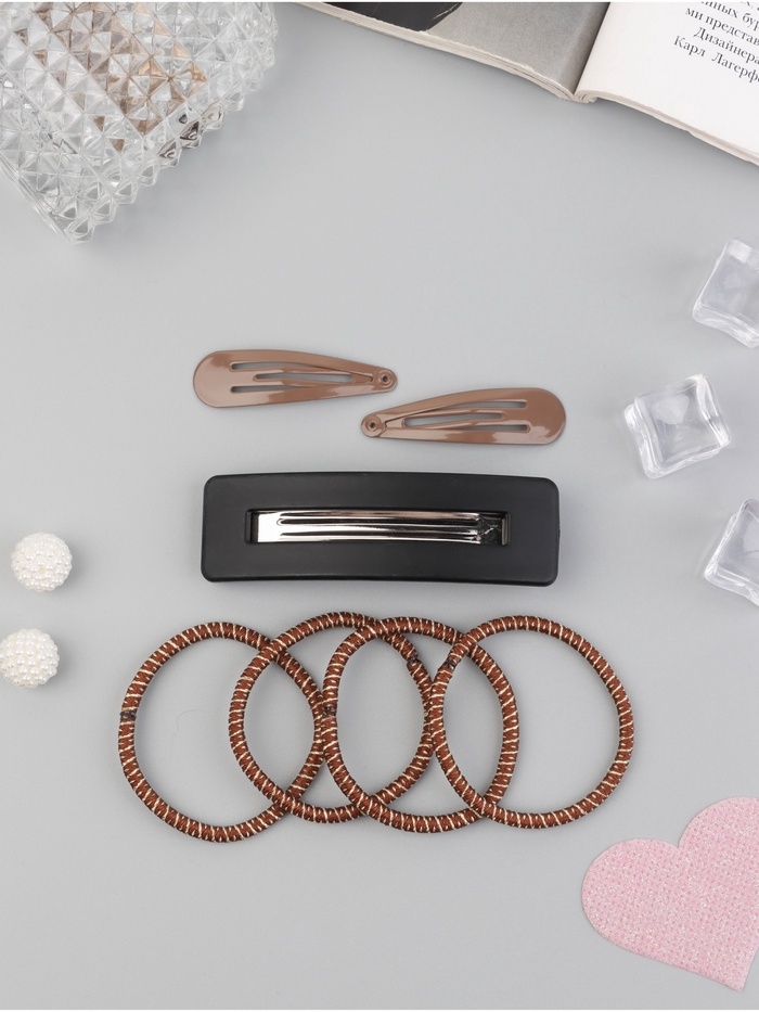 Набор для волос "Флоренс лео" (4 резинки 6,5см, автомат 8см, 2 невидимки 4,5см) коричневый 1069157