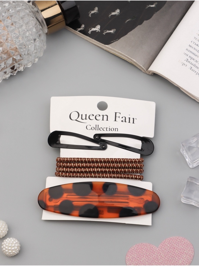 Набор для волос "Авиталь" (4 резинки 6,5см, автомат 8см, 2 невидимки 4,5 см) чёрн коричн
