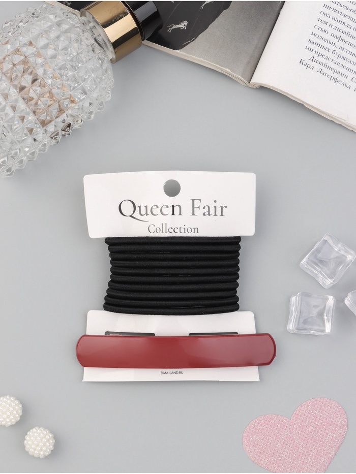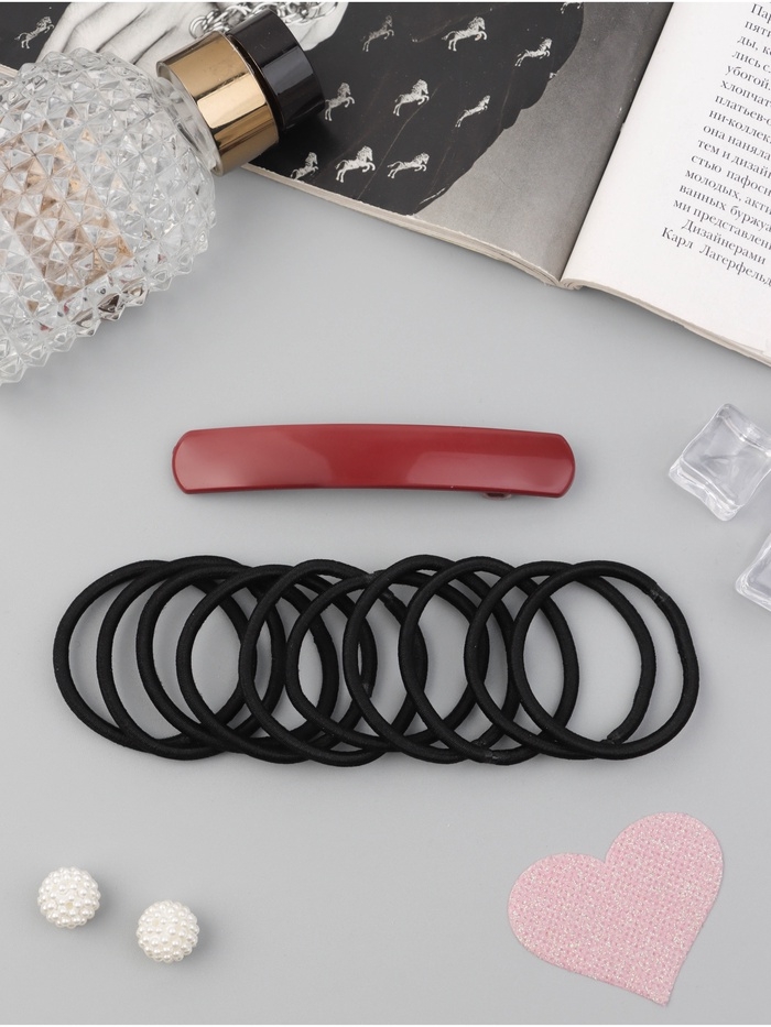 Набор для волос «Лилит» (10 резинок 6,5см, заколка-автомат 9 см) чёрный бордовый