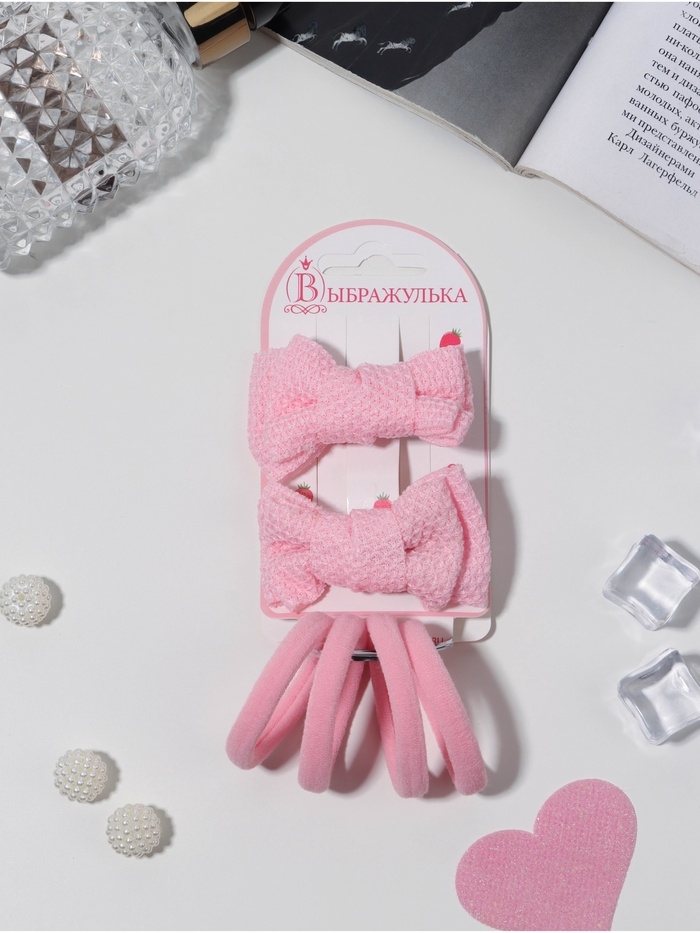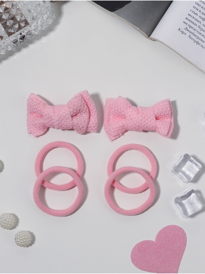 Набор для волос "Школьница галант" (4 резинки 3,5 см, 2 зажима 6 см) элит, розовый