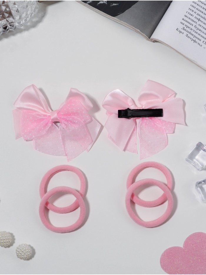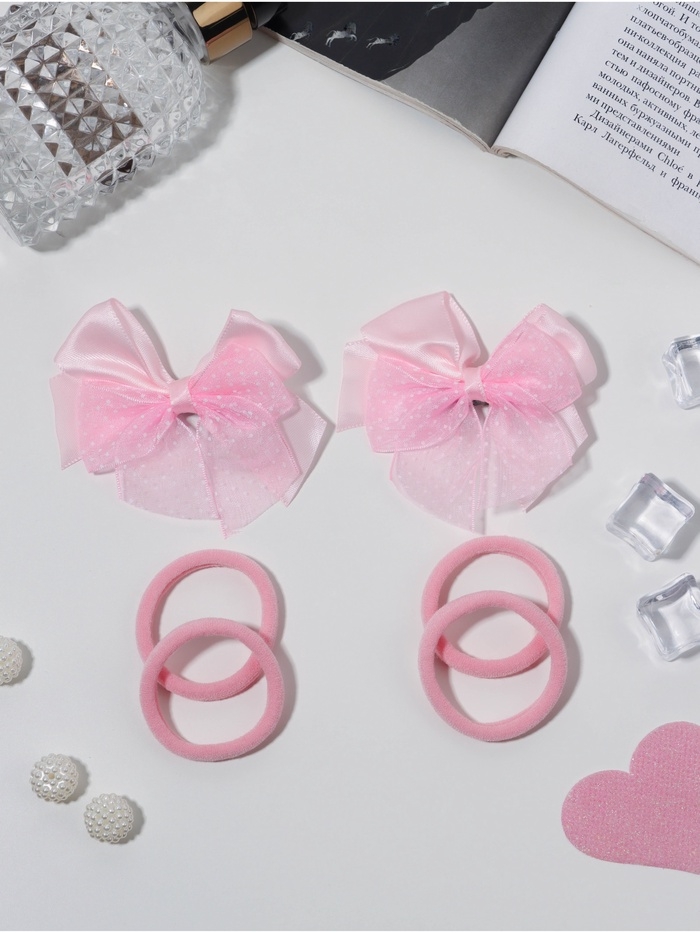 Набор для волос "Школьница галант" (4 резинки 3,5 см, 2 зажима 6 см) крапинка, розовый