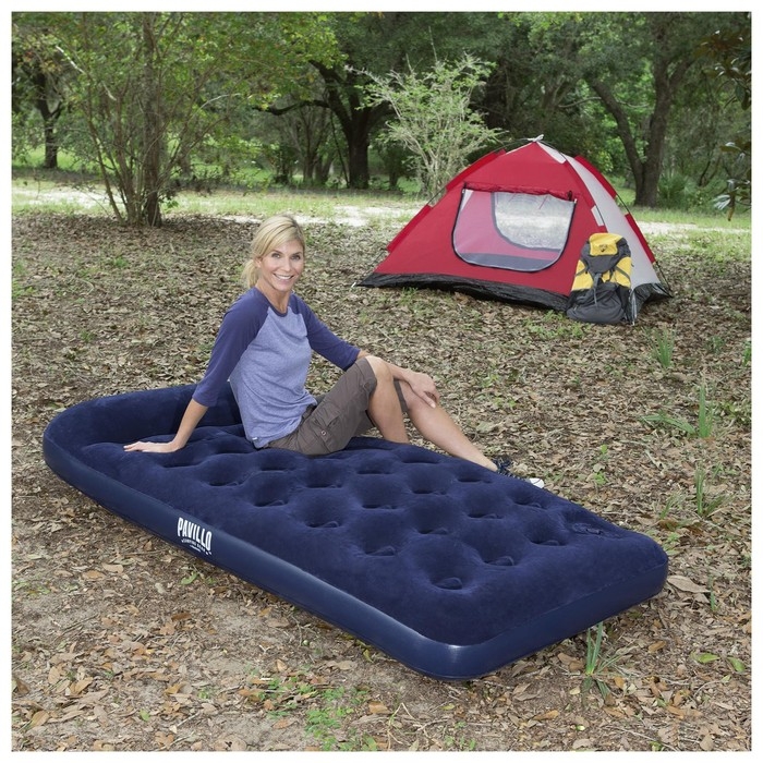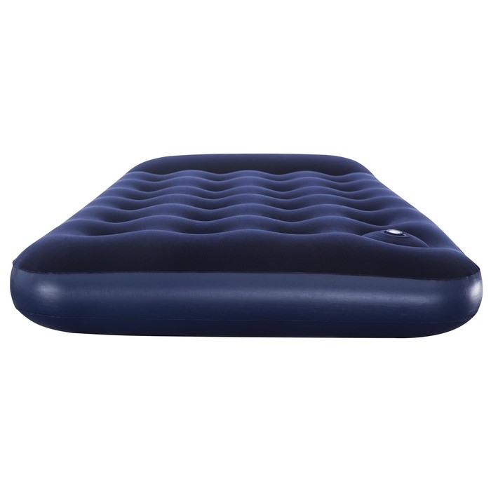 Когда нужно разместить гостей, но в доме нет лишнего спального места, вас выручит надувной матрас. Прочные перегородки внутри обеспечивают необходимую упругость. Встроенный ножной насос упрощает процесс установки. С велюрового покрытия, приятного на ощупь, не скатывается постельное бельё. Изделие имеет сдержанный дизайн, классическая расцветка позволяет ему хорошо вписываться в любой интерьер. Данную модель можно назвать настоящей надувной кроватью, так как она не уступает в комфорте обычным пружинным матрасам. Подходит также для использования на открытом воздухе.
