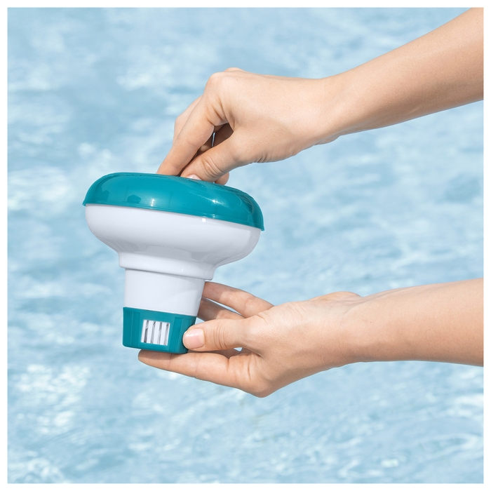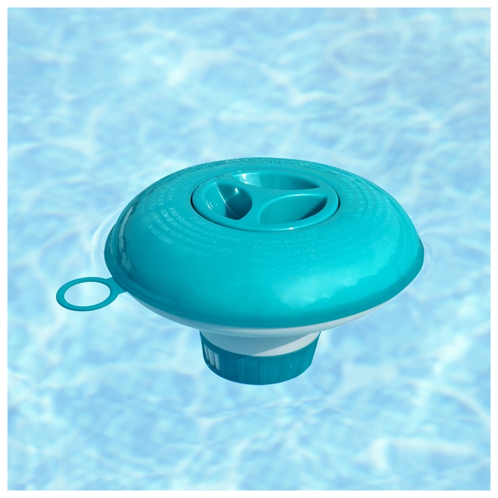 Плавающий дозатор — это самый простой метод обеззараживания воды. Он прост в использовании и подходит для всех типов бассейнов. С помощью регулируемых отверстий происходит равномерное распределение количества реагентов и обеспечиваются безопасные для купания условия. Поместите таблетки хлора внутрь изделия и расположите дозатор в воде. С помощью такого метода обеззараживания, вы сможете насладиться безопасным купанием.