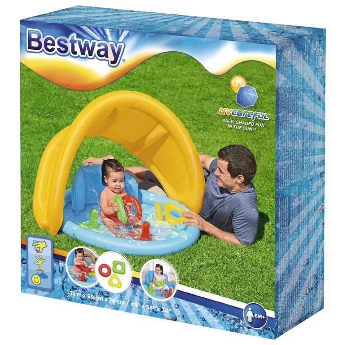 Бассейн надувной «Ракушка», 115 х 89 х 76 см, с навесом, от 6 месяцев, 52568
