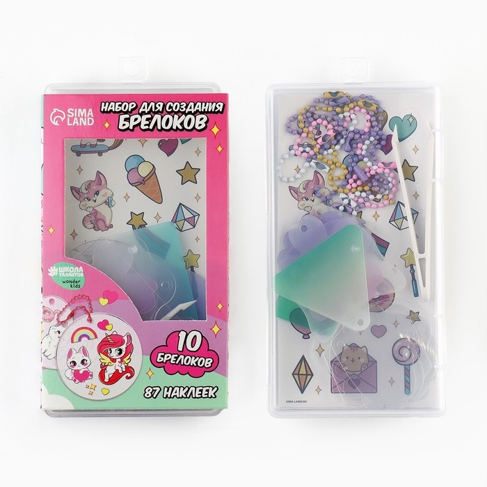 Ищете интересное занятие для вашего ребенка? С помощью набора ваш малыш сможет самостоятельно создать сразу десять ярких брелоков!