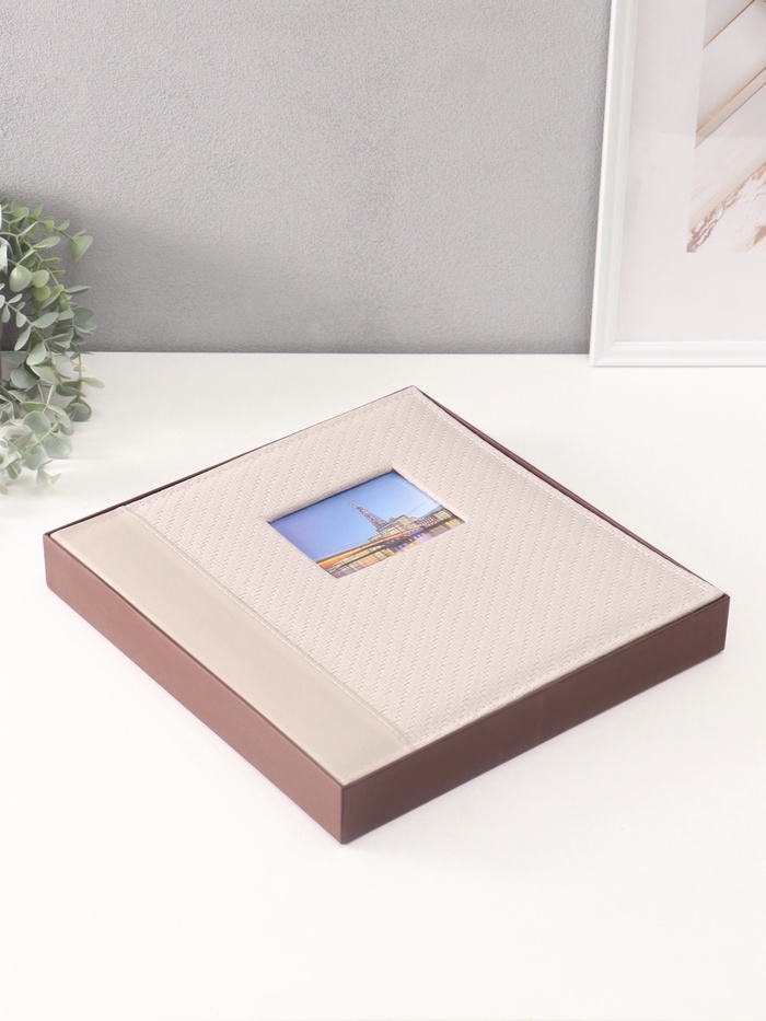 Фотоальбом на 500 фото 10х15 см "Вязаный узор" кожзам, серый, в коробке 5,5х32,5х34 см