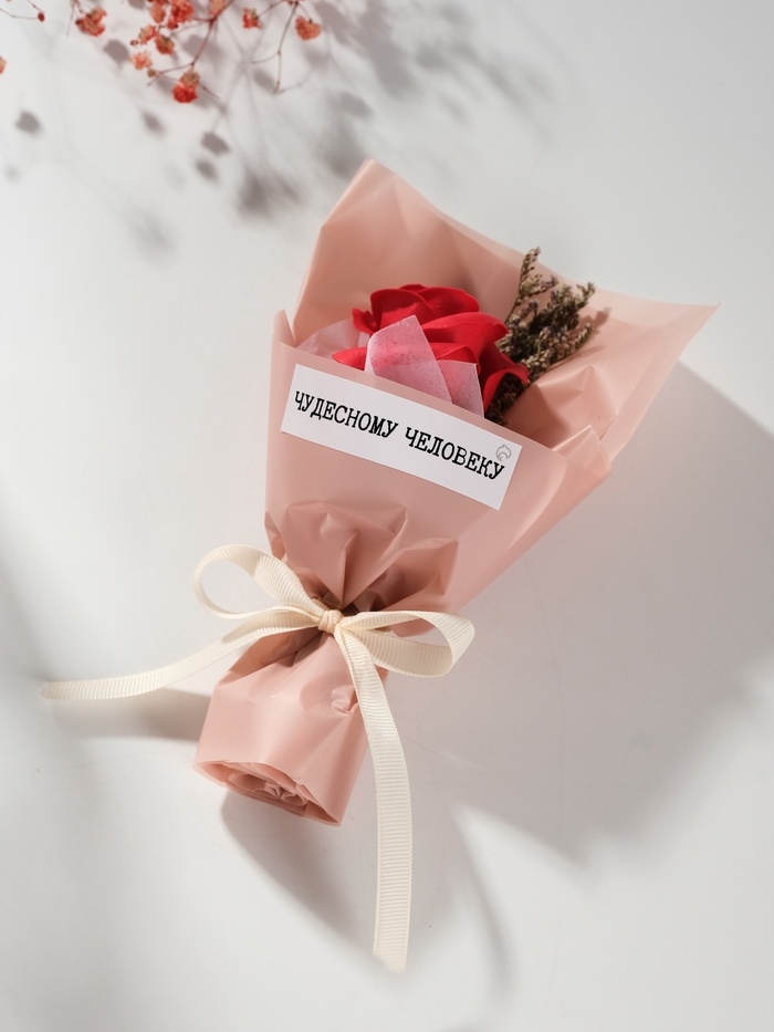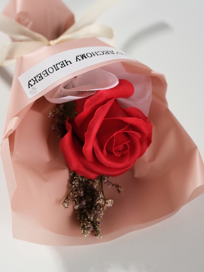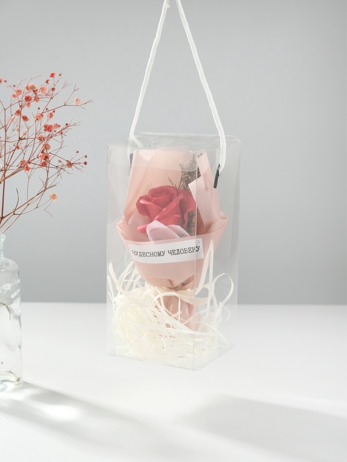 Букет из мыльных лепестков "Роза подарочная в коробке" красный 8,6х8,6х18,5 см