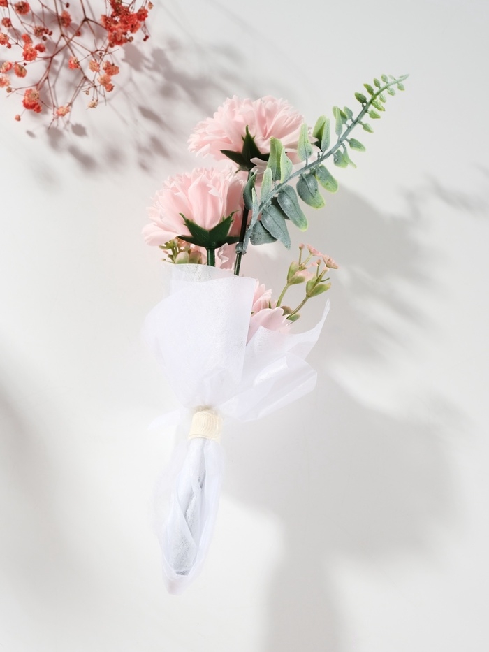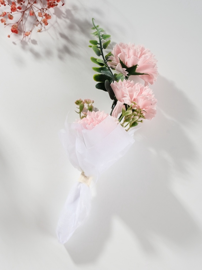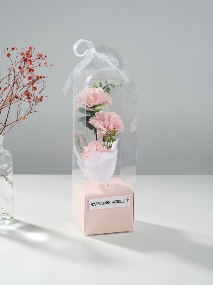 Букет из мыльных лепестков "Три гвоздики на подиуме" розовый 8х8х25 см