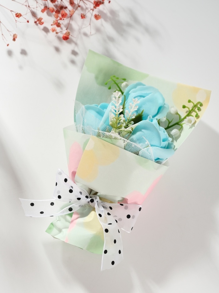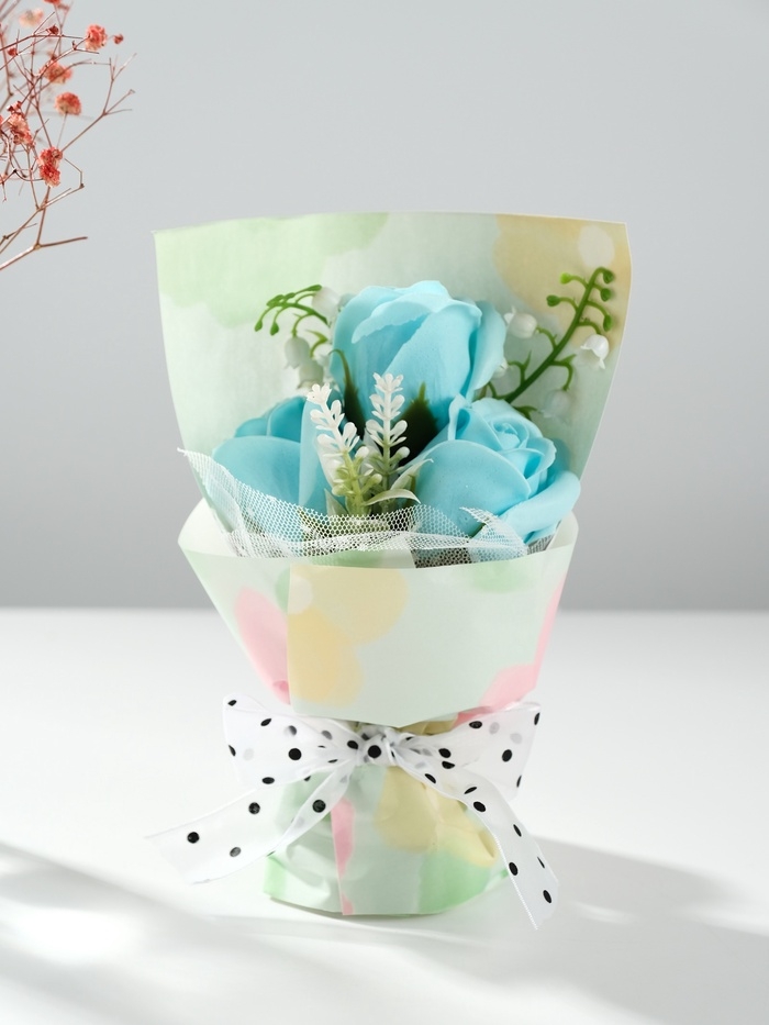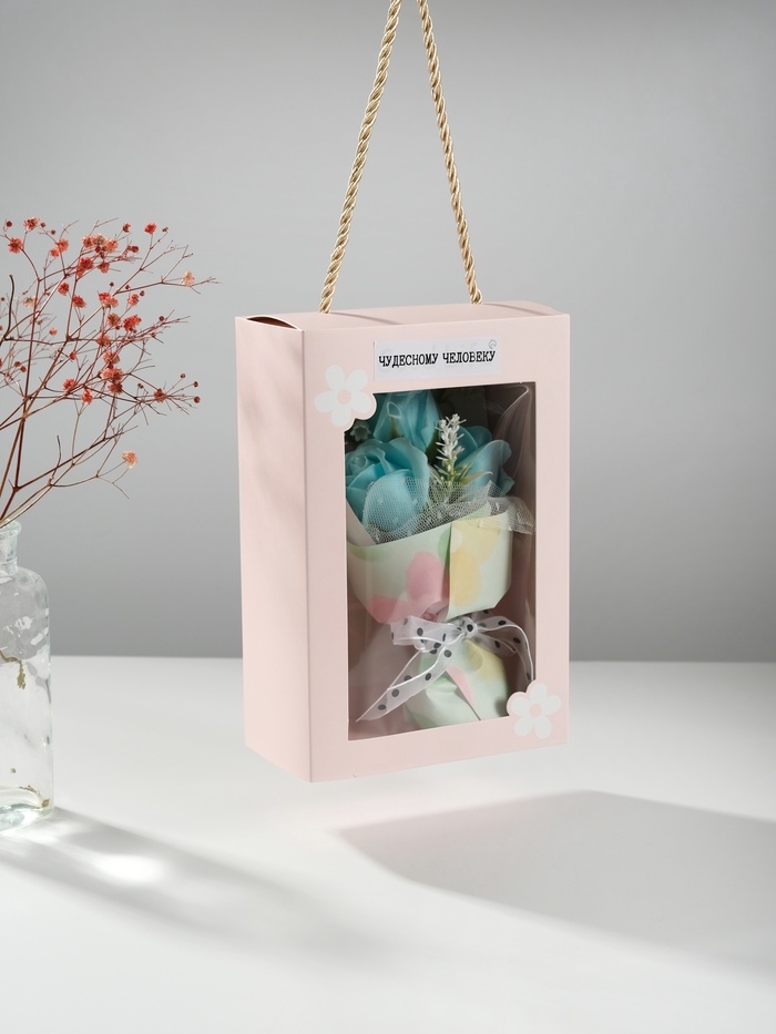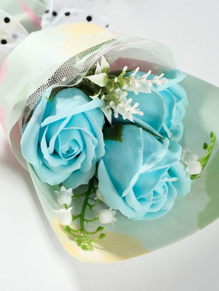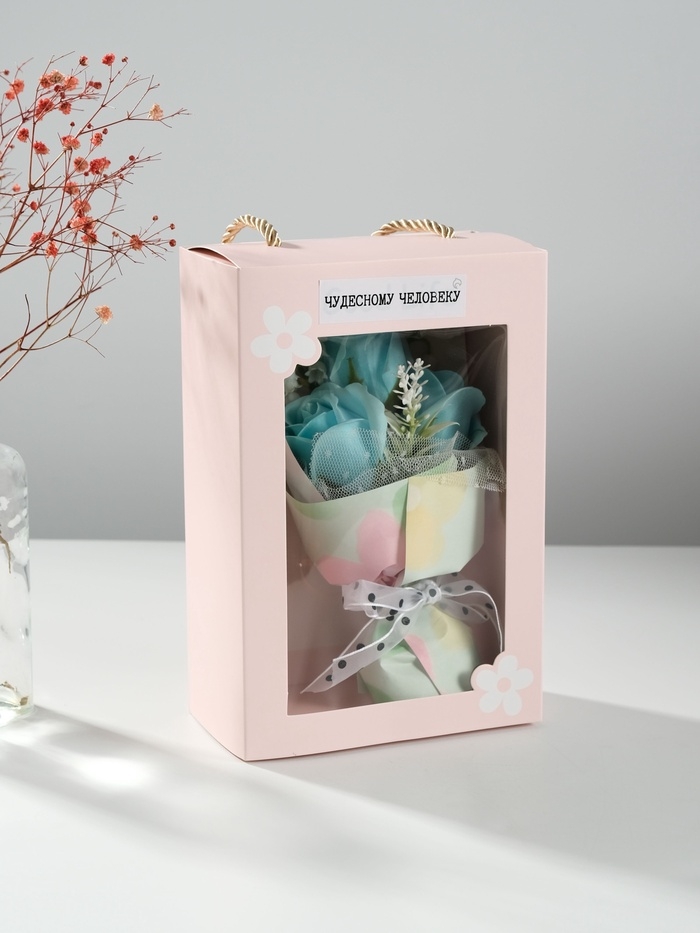 Букет из мыльных лепестков "Розы в подарочной коробке" голубой 7,5х13,8х20,5 см