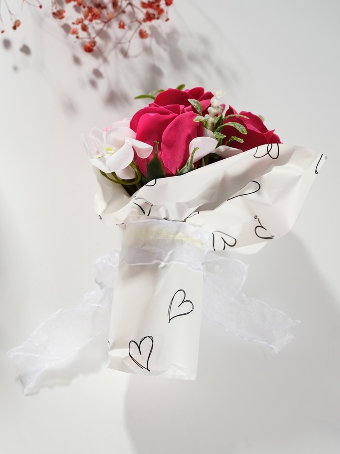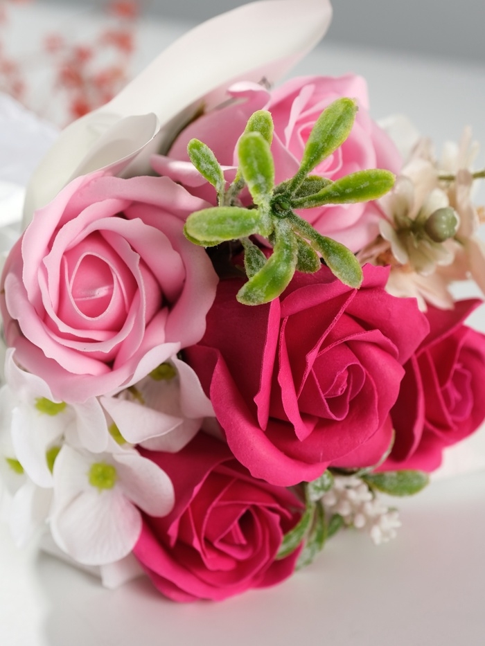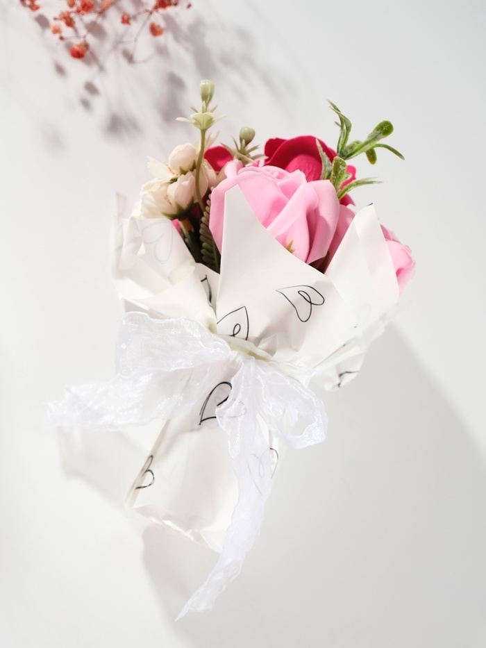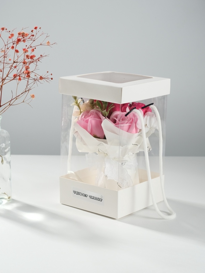 Букет из мыльных лепестков "Розы и флоксы в подарочной упаковке" розовый 12,5х12,5х20,5 см 1066770