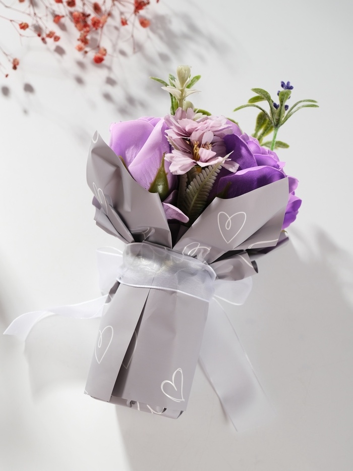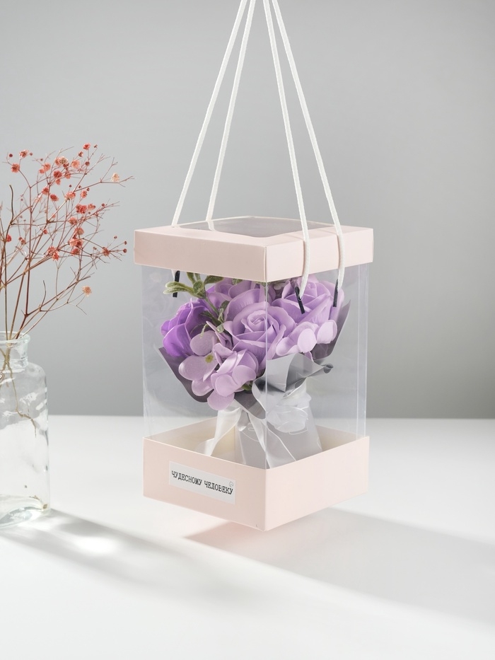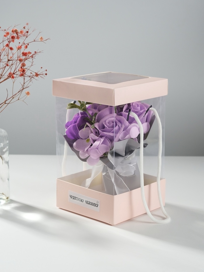 Букет из мыльных лепестков "Розы и флоксы в подарочной упаковке" сиреневый 12,5х12,5х20,5 см 10667