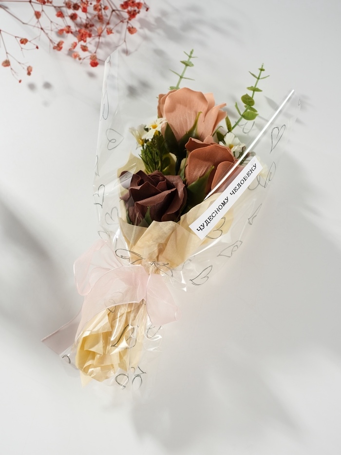 Букет из мыльных лепестков "Нежные цветы на подарок" красный 10х10х25,3 см