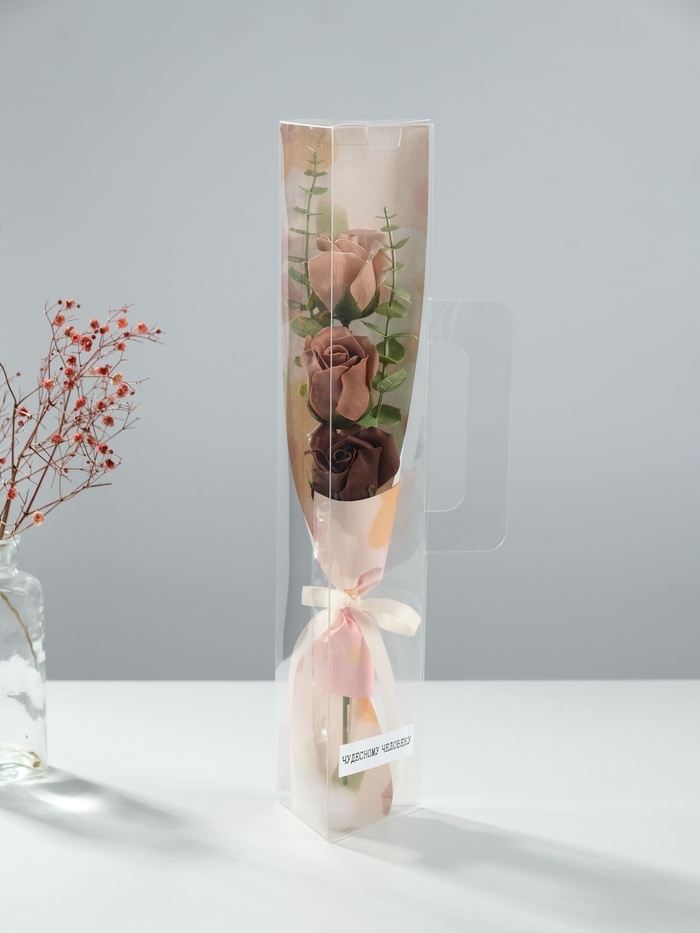 Букет из мыльных лепестков "Три розы с эвкалиптом" бежевый 8,5х7,4х38,6 см