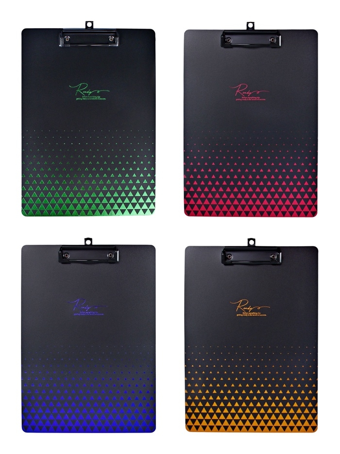 Планшет с прижимом формат А4 пластик1600мкр,Черная с металлизированной отделкой МИКС