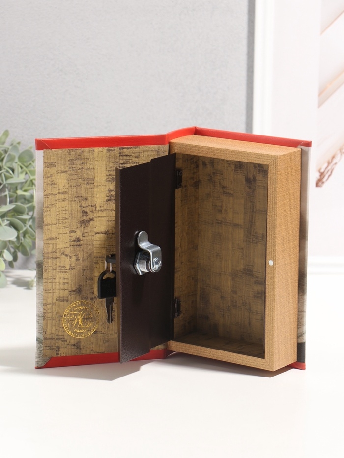 Сейф-книга дерево кожзам "История железных дорог России" 3D тиснение 21х13х5 см