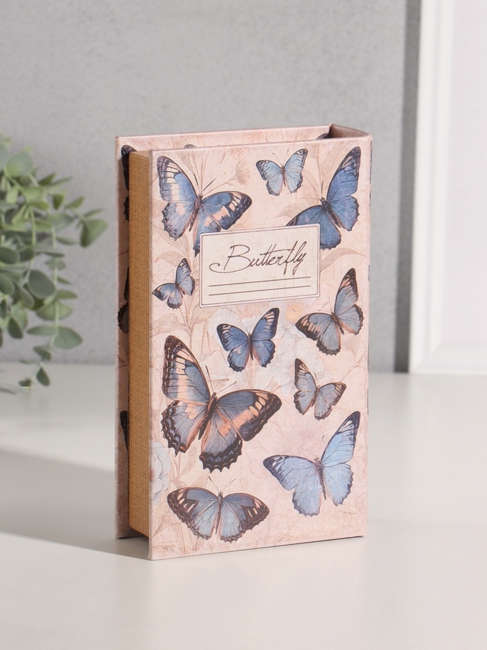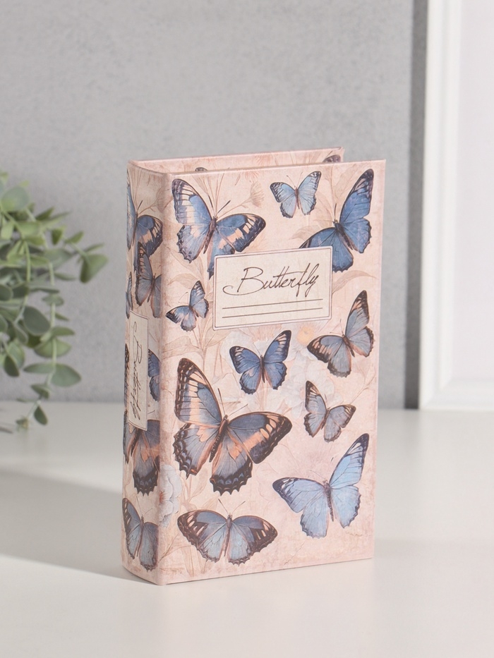 Сейф-книга дерево кожзам "Синие бабочки" 21х13х5 см