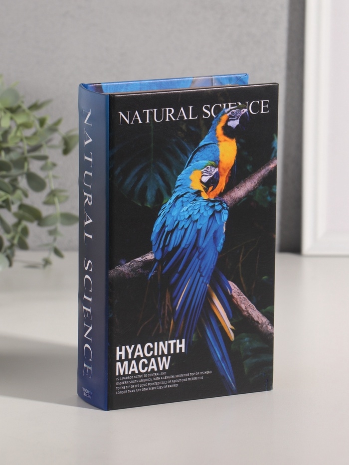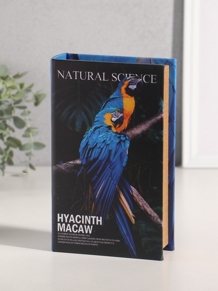 Сейф-книга дерево кожзам "Птицы. Гиацинтовый ара" 21х13х5 см