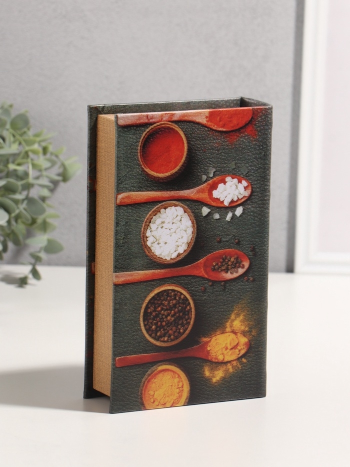 Сейф-книга дерево кожзам "Специи мира от А до Я" 3D тиснение 21х13х5 см