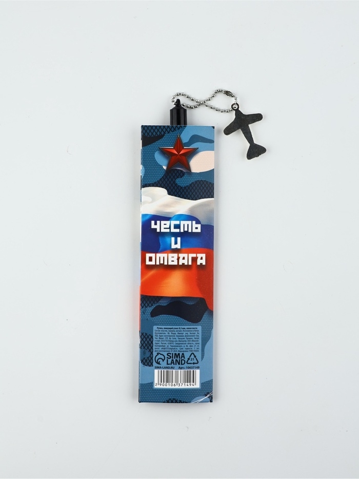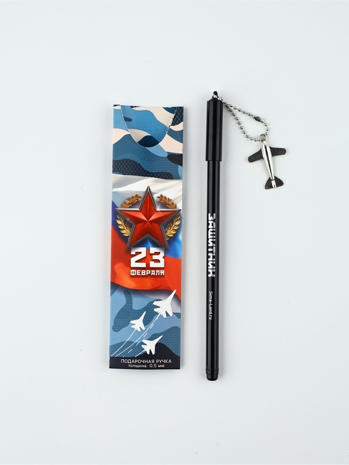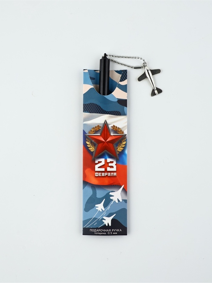 Ручка пластик с подвеской самолёт "23 февраля честь и отвага"