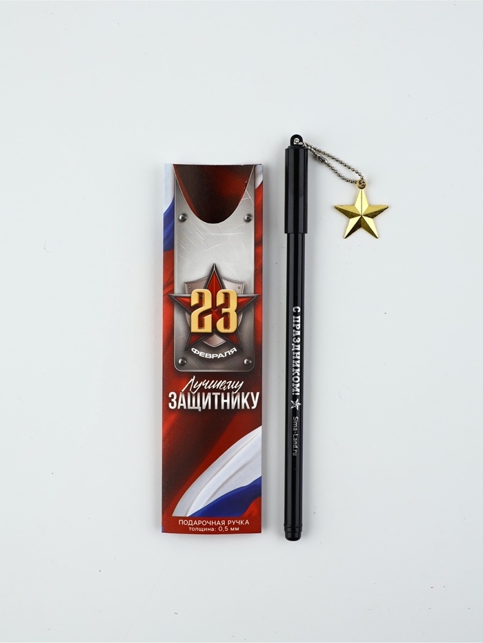 Ручка пластик с подвеской звезда "23 февраля лучшему защитнику"